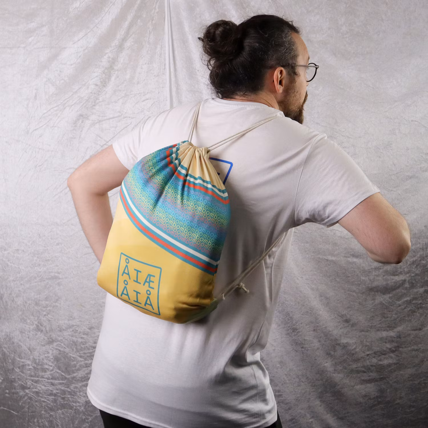 🎨 En retro gymnastikpose med farve og personlighed! Let, praktisk og med det ikoniske “Å-I-Æ Å-I-Å” – perfekt til fans på farten. 💼🎵