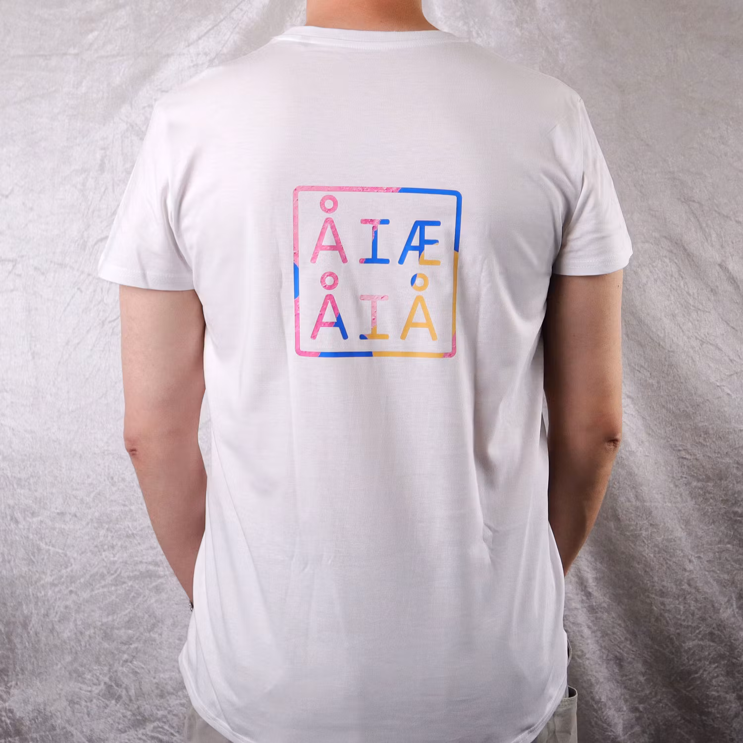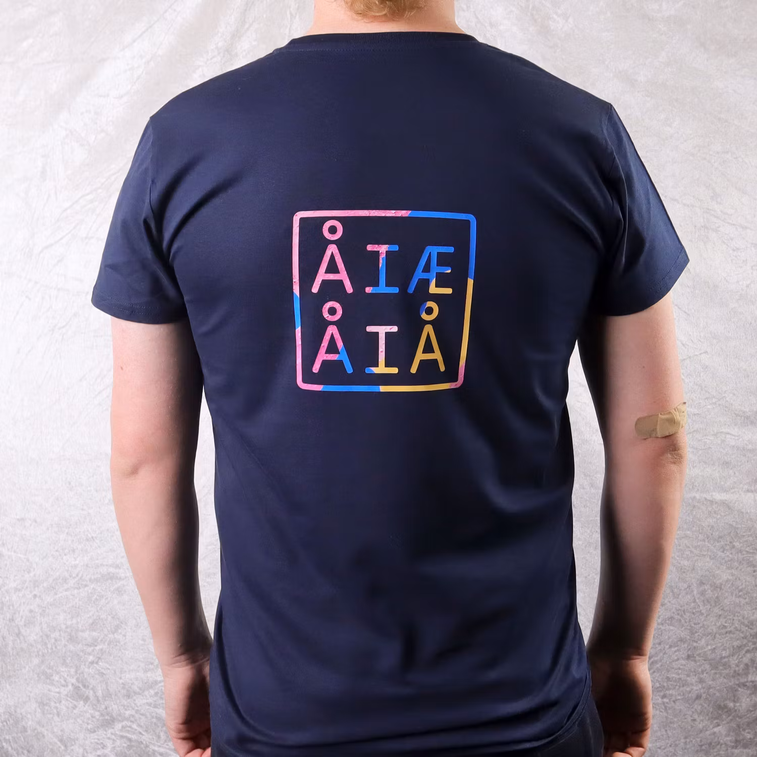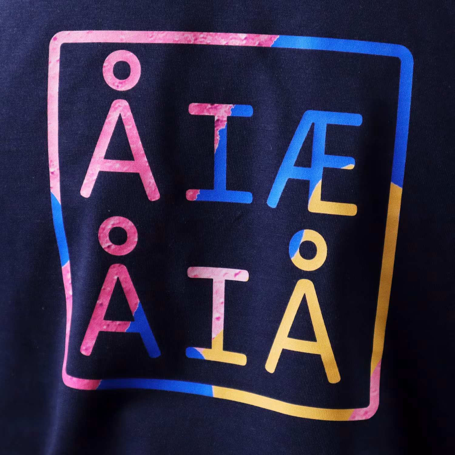 Denne bløde unisex t-shirt er vores logo kastet ind i et farvesplash – energisk, ikonisk og fyldt med “Å-I-Æ Å-I-Å”-power.